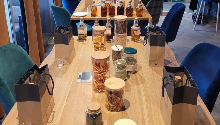 Création personnalisée : chaque participant compose son propre rhum arrangé selon ses goûts et repart avec sa bouteille remplie, prête à macérer.
